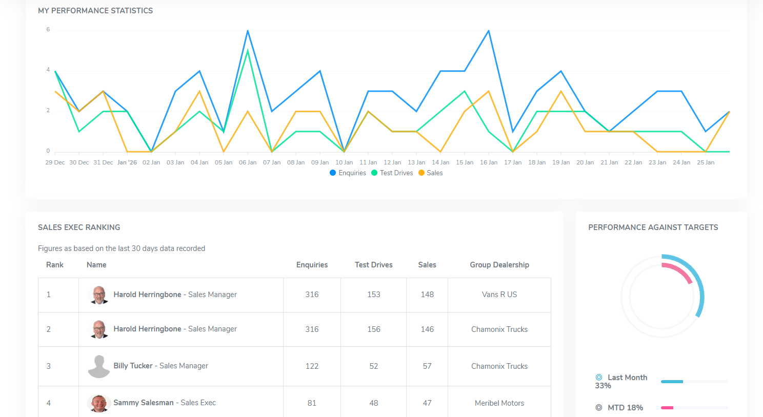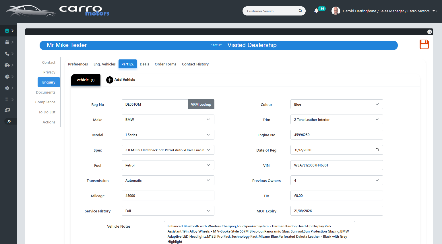 - Enquiries, test drives & sales tracking