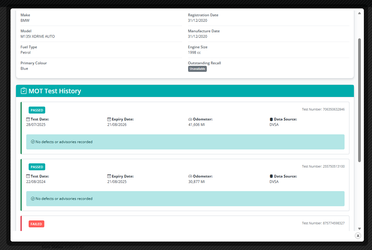 - DVLA, MOT, tax & vehicle history checks