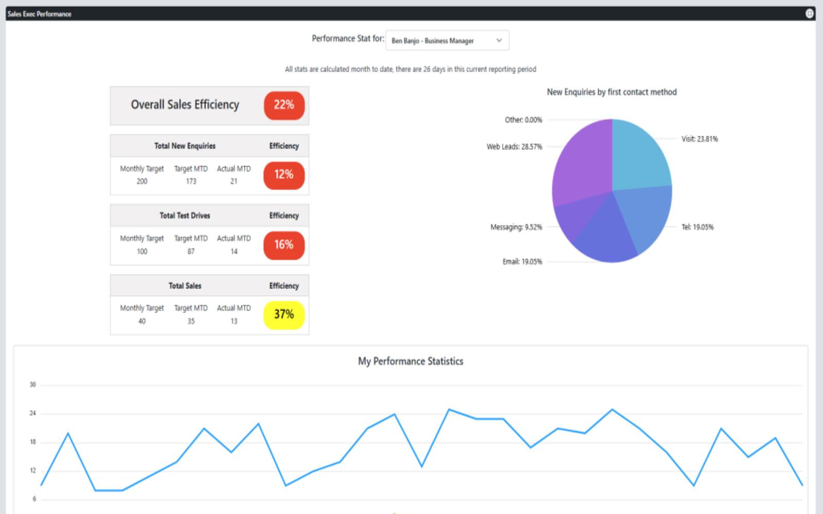 - Sales exec performance dashboards